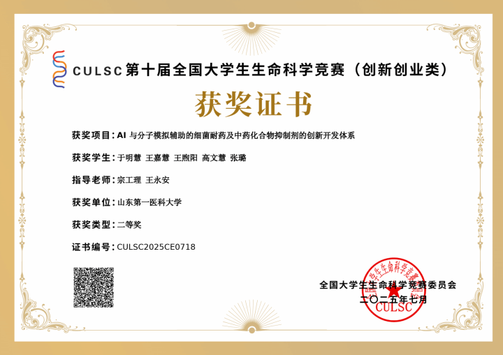 AI 与分子模拟辅助的细菌耐药及中药化合物抑制剂的创新开发体系 |