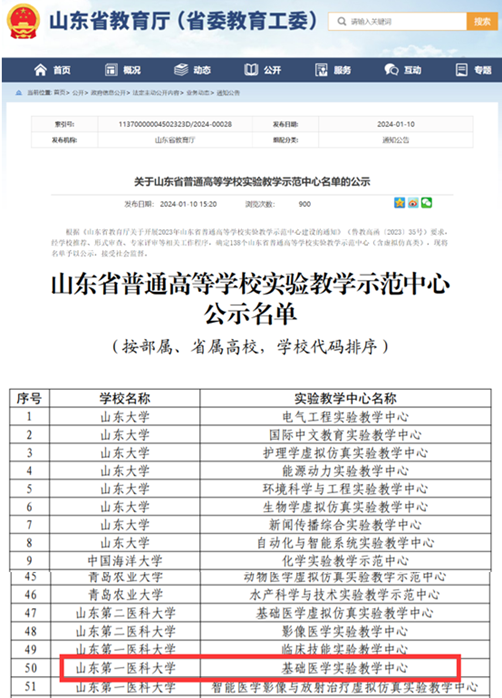 [4] 2024-01,基础医学实验教学中心,山东省普通高等学校实验教学示范中心,负责人:韩金祥