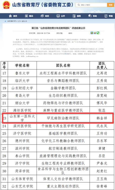 [2] 2023-07,罕见病防治教师团队,山东省高校黄大年式教师团队;韩金祥,等