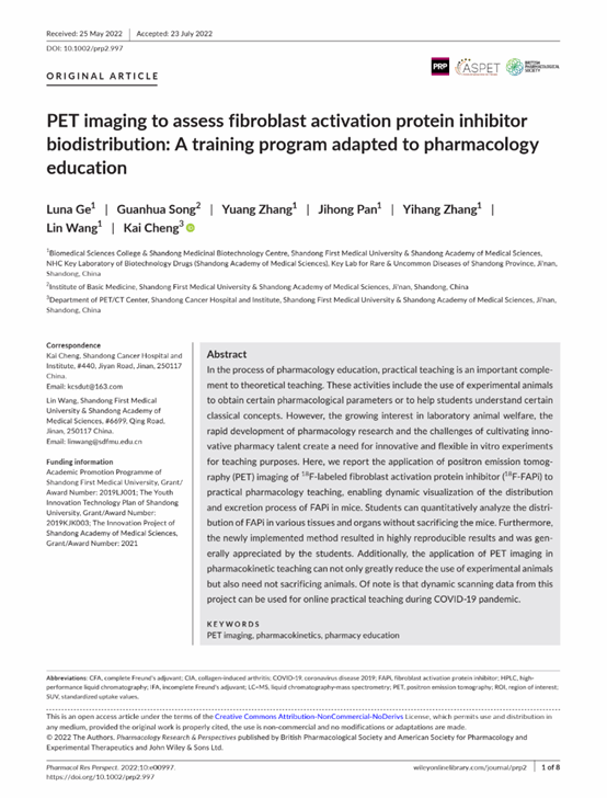 PET imaging to assess fibroblast activation protein inhibitor biodistribution: a training program adapted to pharmacology education |