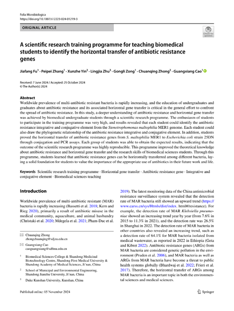 A scientific research training programme for teaching biomedical students to identify the horizontal transfer of antibiotic resistance genes |