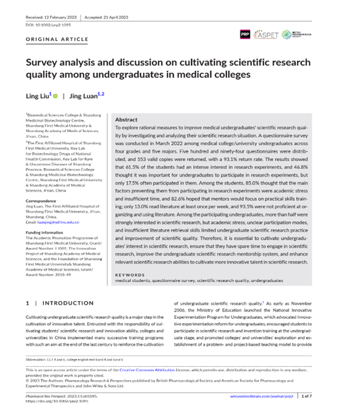 Survey analysis and discussion on cultivating scientific research quality among undergraduates in medical colleges |