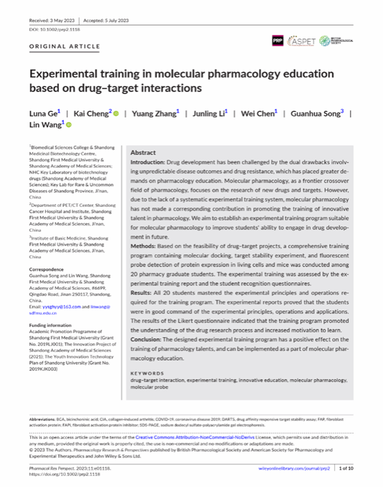 Experimental training in molecular pharmacology education based on drug–target interactions |