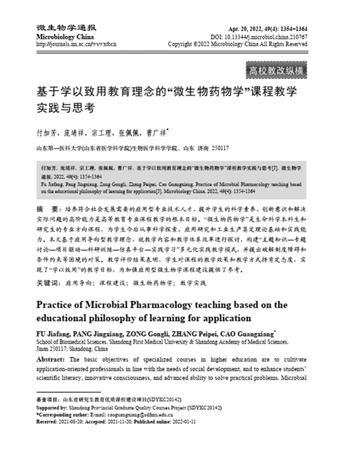 基于学以致用教育理念的“微生物药物学”课程教学实践与思考 |