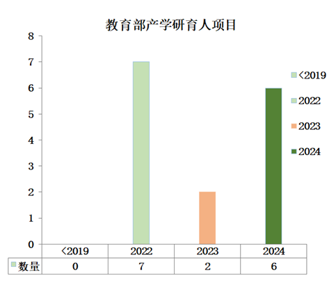 (2)教研教改水平提升:本成果通过三合、三作和三同育人体系,教师教研教改水平稳步提升。获批教研教改项目数量提升(相比于2019年前)8倍,教改质量稳步提升。产学研协作育人项目,实现年均4.6项的提效。